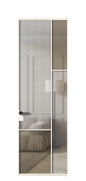 АЛПЛ041.12 Алюминий пудровый белый Декоративное стекло с сеткой "Mesh silver", триплекс, 6 мм + Прозрачное бронзовое стекло, триплекс